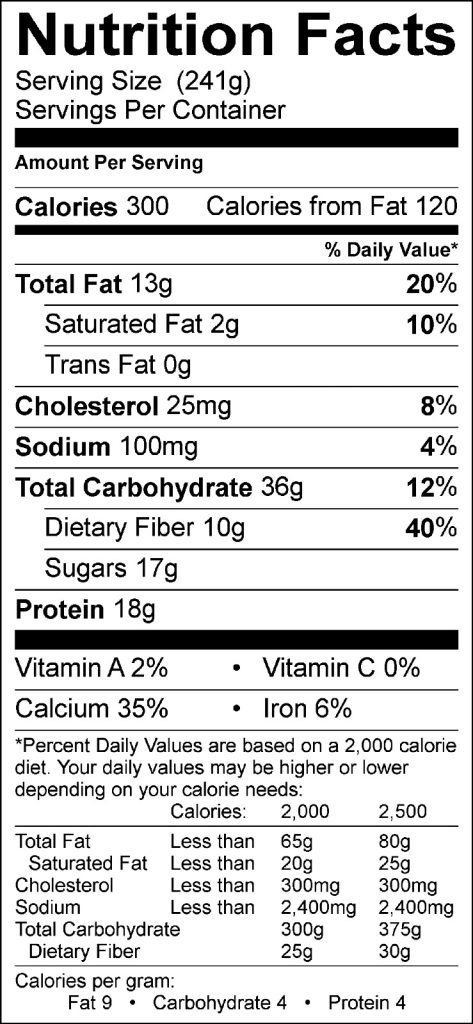الحقائق التغذوية